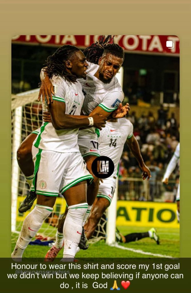 “Honoured to wear this shirt and score my first goal. We didn’t win, but we keep believing, if anyone can do it, it is God,” Bassey wrote