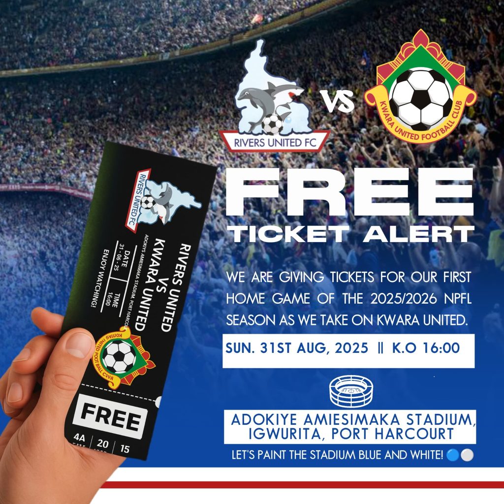 Rivers United have announced that their first home game of the 2025/26 Nigeria Premier Football League (NPFL) season against Kwara United is open to the public, Nigeriasoccernet.com reports.